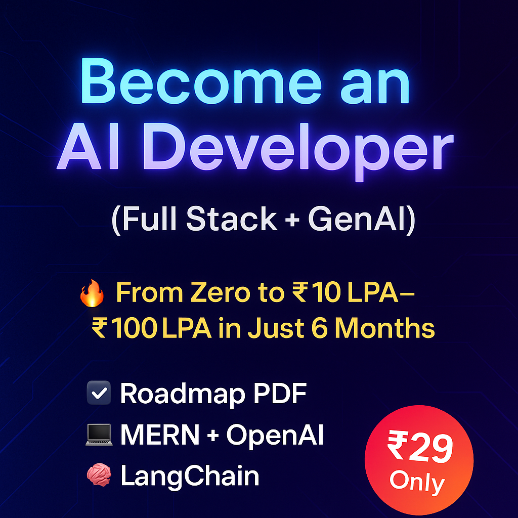 💸 Only ₹29 for a roadmap that can change your career path forever. Whether you’re a student, fresher, or tech professional — this guide gives you the structure, skills, and strategy to hit ₹10LPA–₹100LPA+ goals.